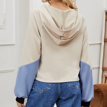 Grosir kustom wanita Pullover kasual hoodie warna memblokir kaus dengan kru leher dicetak